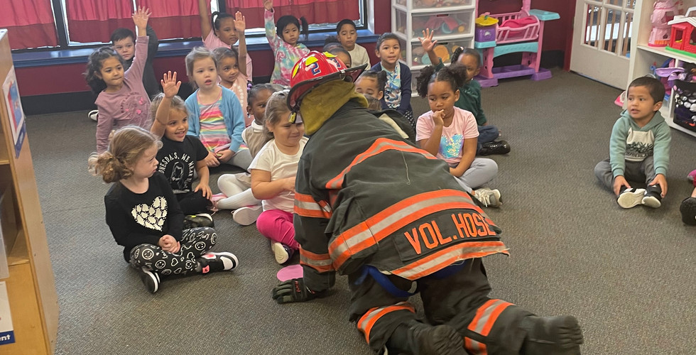 On October 11th, Vol. Hose visited Building Blocks Day Care Center in West Haverstraw as a part of our fire prevention initiative. Our very own firefighter, Hailey Willis, whom also happens to work at Building Blocks was able to participate in the presentations. Being that the kids are already familiar with "Ms. Hailey" (as they called her), it made the whole donning of fire protective equipment much more pleasant for them. It is critical to make sure the children are acquainted with how a firefighter looks with full gear so they don't hide away in fear in case of a real fire.